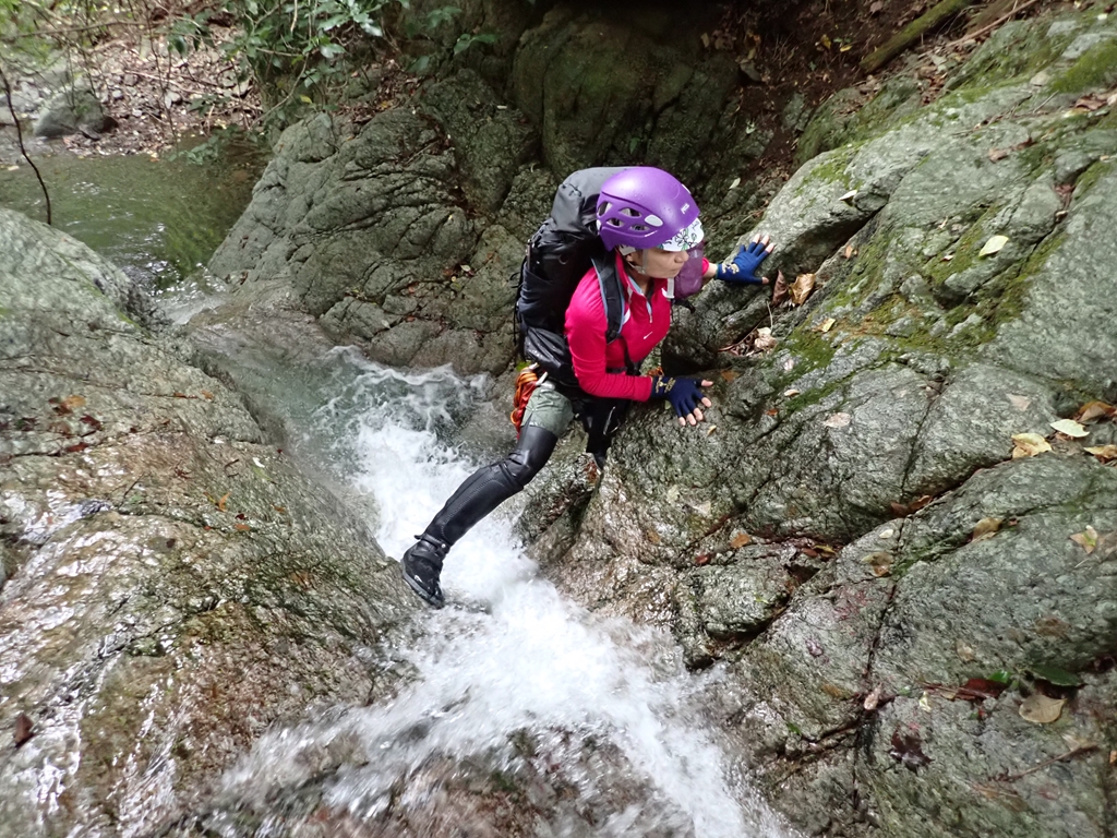 10/19 葛葉川は、沢登りを始めるなら「とりあえず葛葉川」といわれる、デビューするに適した沢です。矢継ぎ早に表れるステップやホールドが豊かな滝を登りながら、沢のエキスもギュッと詰まっている渓相で、何度訪れても楽しめます。