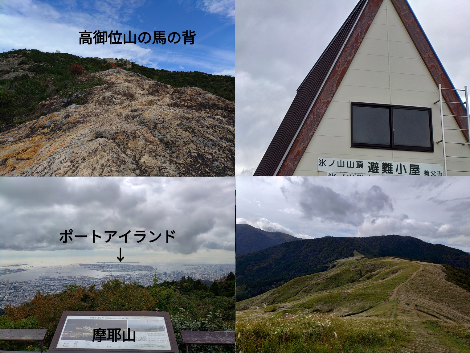 日程10/15〜(H報告書1015六甲山)。六甲山、扇ノ山、氷ノ山+鉢伏山、高御位山、摩耶山を登ってきました。播磨アルプスと呼ばれる高御位山(304m)には、馬の背や百間岩と呼ばれる死亡事故ありの箇所があり、 残念ながら私は迂回路を使いました。
