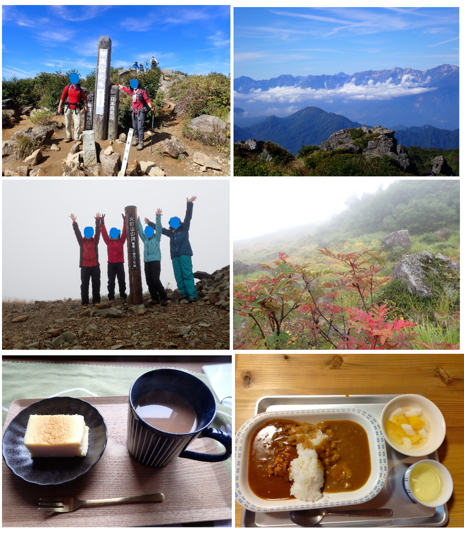 9/22~9/26にかけて妙高山・火打山に登りました。22日は笹ヶ峰キャンプ場に前泊、翌日は黒沢池ヒュッテに宿泊、朝食に名物のクレープを食べて妙高山を目指しました。途中切れたトラバースを慎重に歩き、ゴツゴツした登山道を登り、妙高山に着きました。天気に恵まれ360度の絶景を楽しみました。北アルプスの白馬三山、剱、槍穂が良く見えました。翌日は高谷池ヒュッテから火打山を越え焼山を目指しましたが、天候に恵まれず火打山までとなりましたが、高谷池ヒュッテに戻りチーズケーキ、日本酒のみ比べ、ワインなどでまったりした時間を過ごしました。焼山は来年の宿題となりましたが、素晴らしいメンバーで大満足の山行でした。