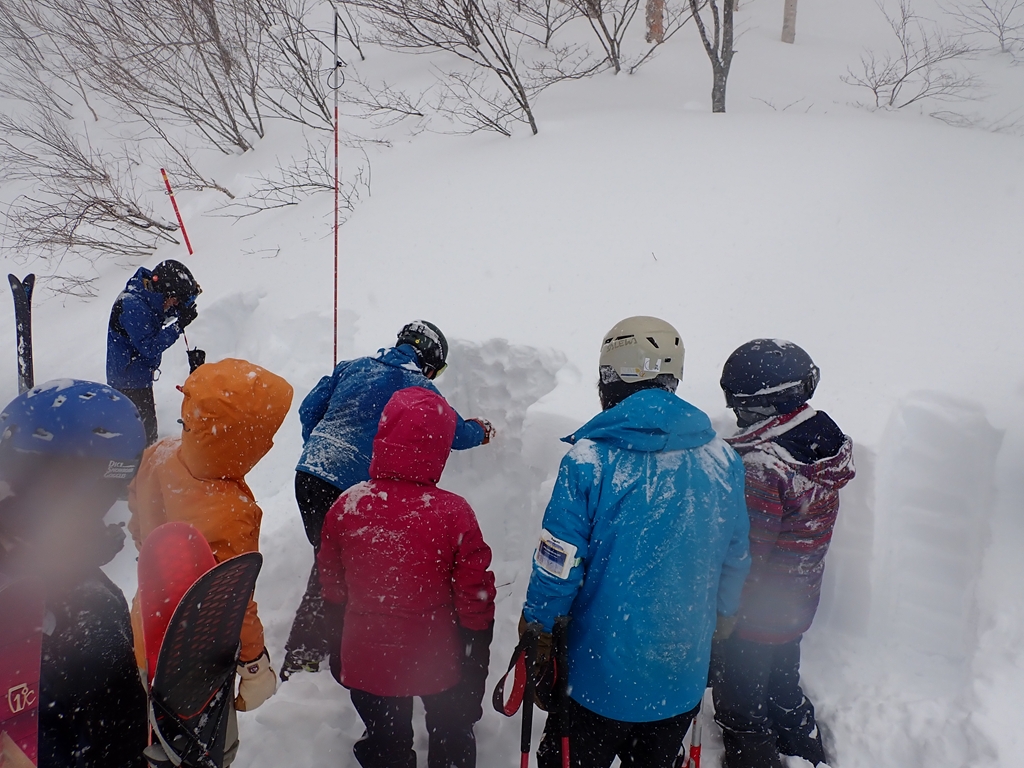 雪質は文句なしの最高レベル。栂池スキー場の最奥にある非圧雪バーンはこの数日で1mを越す新雪が。シールを付けハイクアップしたり、JAPOWの滑走を楽しんだ。会員講師による雪面チェックの講義もあり、充実した週末となりました。