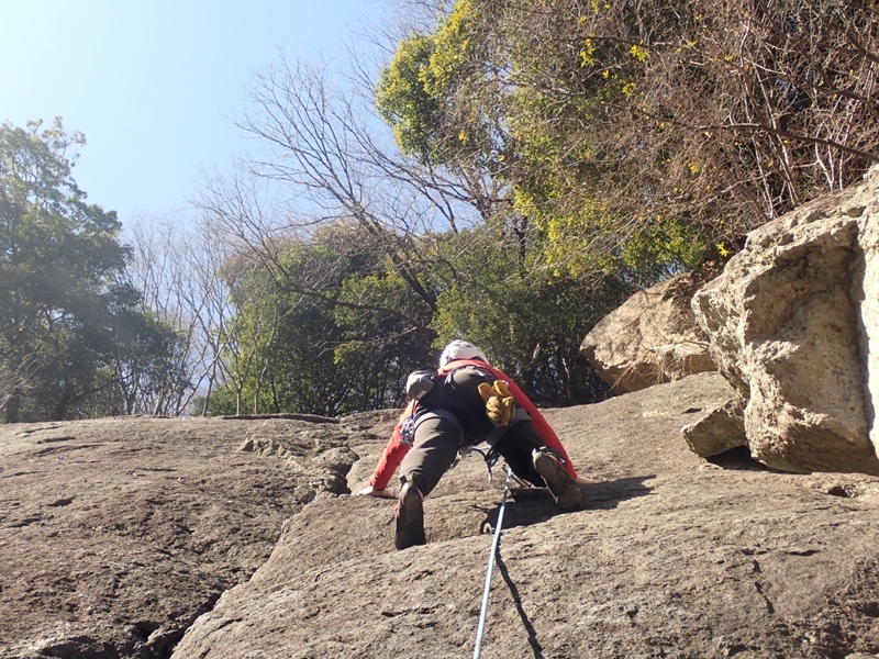 2/21三連休の初日は広沢寺の岩場へ。弁天岩中央の細かいスラブ壁を中心に登攀訓練。僅かな足掛かりにつま先を乗せ、鉛直に立ち上がる。この繰り返しで地球の引力に負けることなく、ビレイポイントへ。他のパーティーは、全てマルチの練習に勤しんでいました。